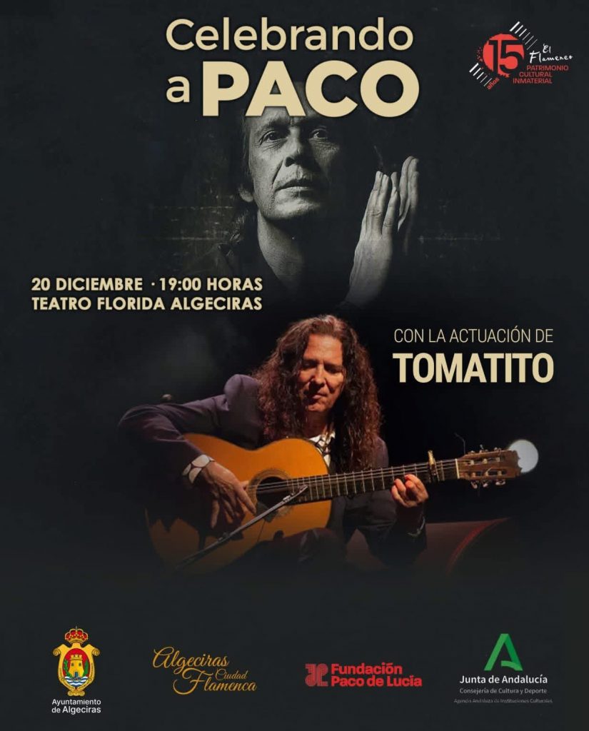 ✨ Tomatito protagonizará la Gala Celebrando a Paco el 20 de diciembre en Algeciras, un concierto gratuito en homenaje a Paco de Lucía.