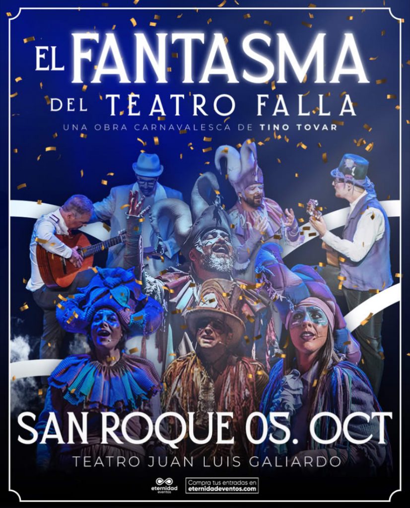 ‘El Fantasma del Teatro Falla’ es una obra teatral carnavalesca del autor gaditano Tino Tovar que fusiona la tradición del Carnaval de Cádiz con elementos de la novela ‘El Fantasma de la Ópera’ de Gaston Leroux.