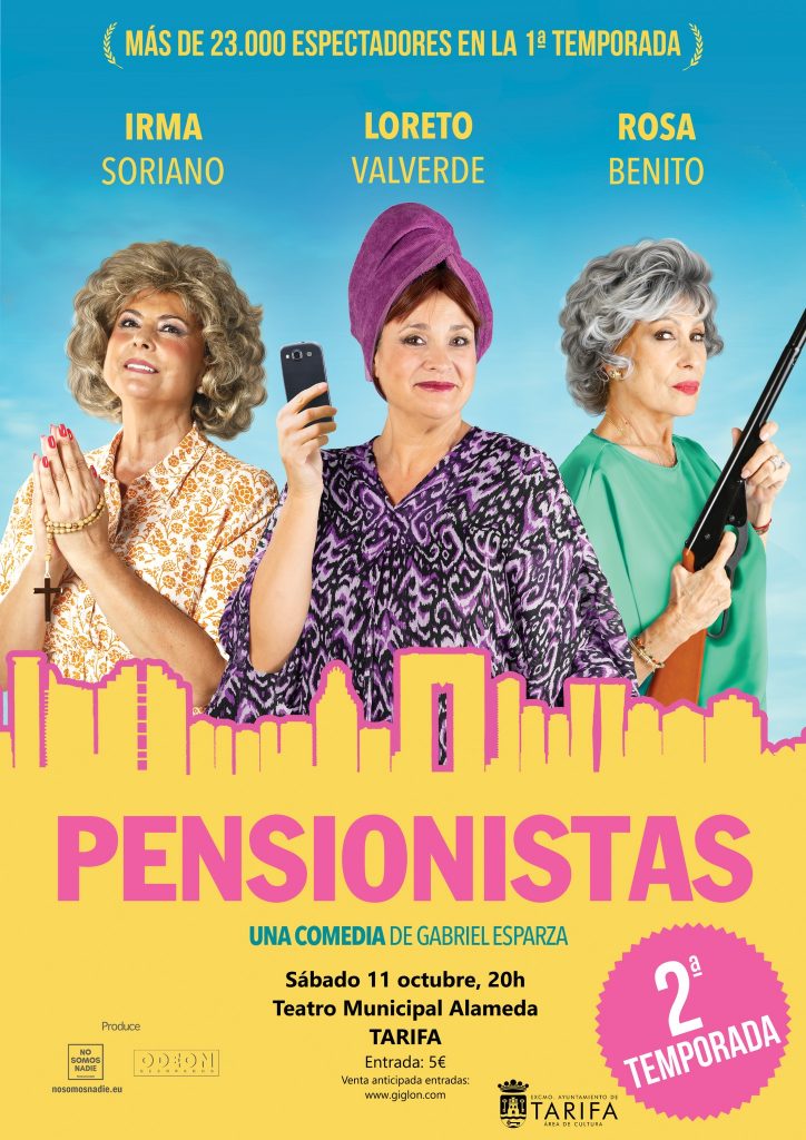 📌La obra ‘Pensionistas…’ con las actrices Irma Soriano, Rosa Benito y Loreto Valverde en sus papeles protagonistas es la oferta del “Otoño Cultural” del Ayuntamiento de Tarifa para este puente festivo del ‘Pilar’.